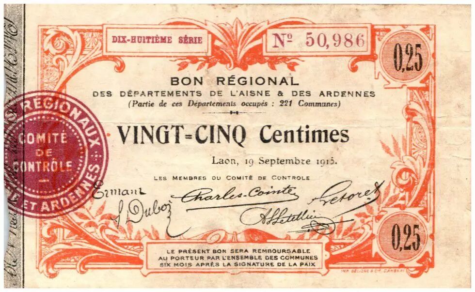 Accueil > Archivage > France 25 Centimes Laon Régional - 18ème série - 1915