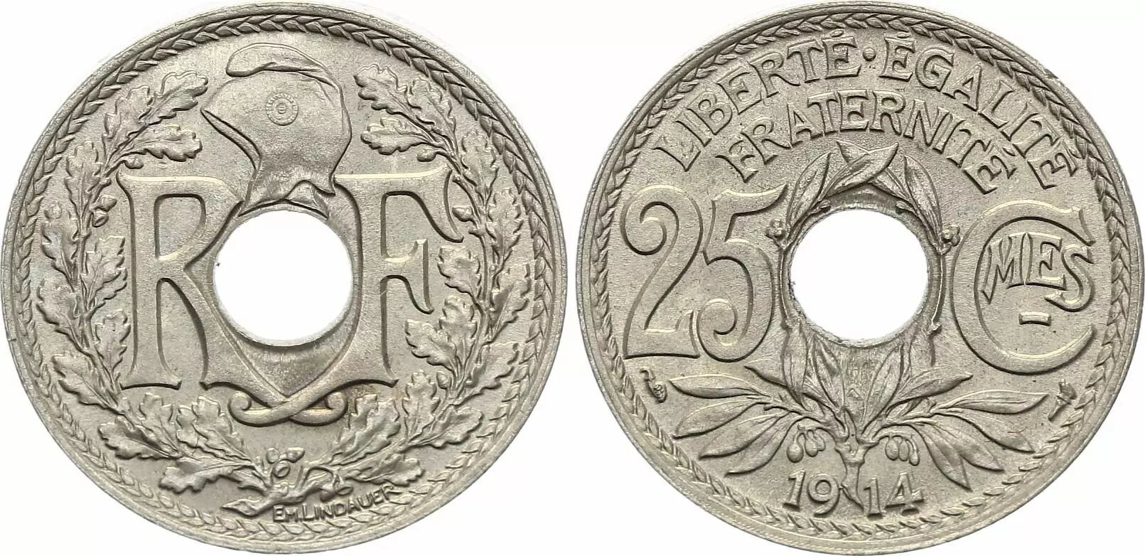 Pièce France 25 Centimes, Lindauer - 1914 - Cmes soulignés