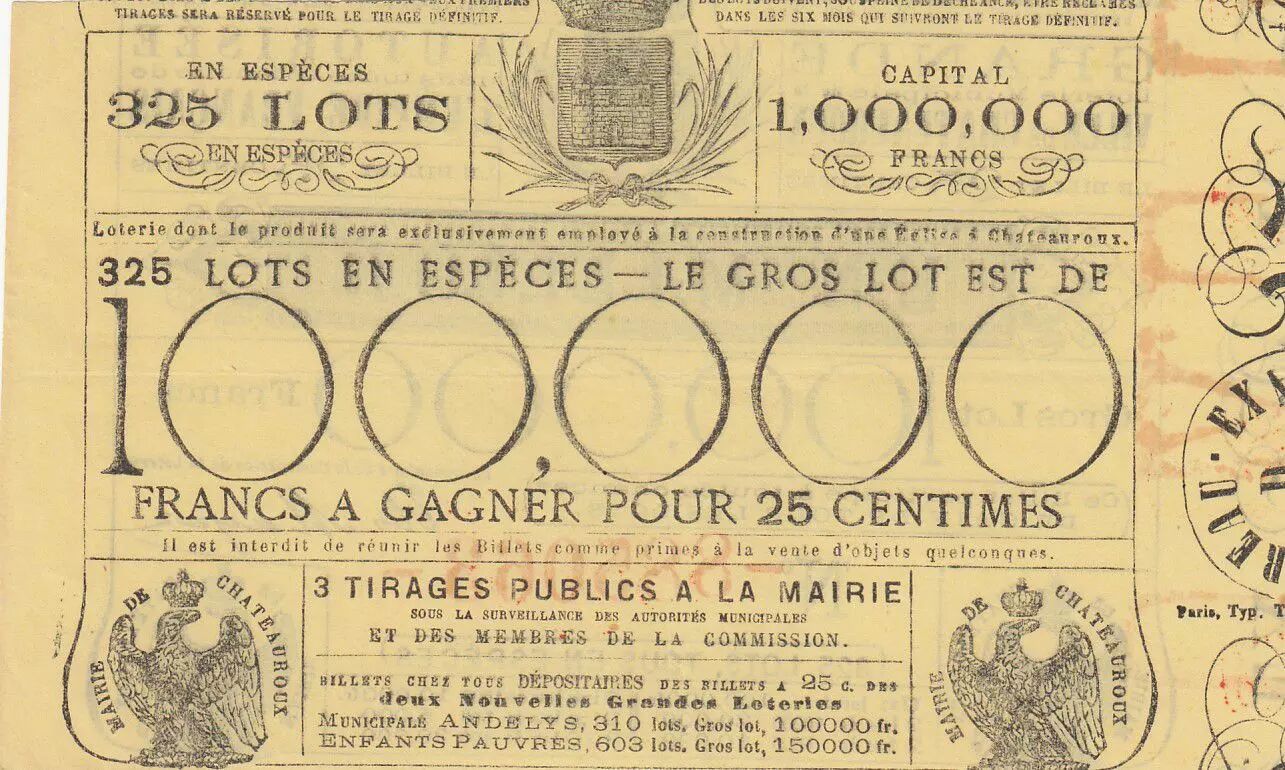 Banknote France 25 Centimes Loterie de Chatearoux - 1868 - VF - 2 nd ex