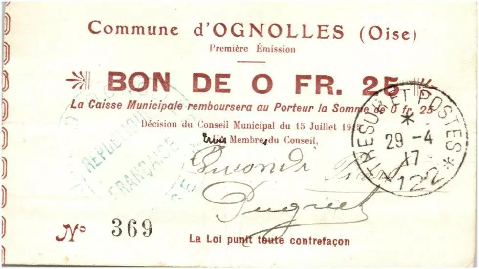 Les Billets des Communes et des Villes (Pir. 60.74)