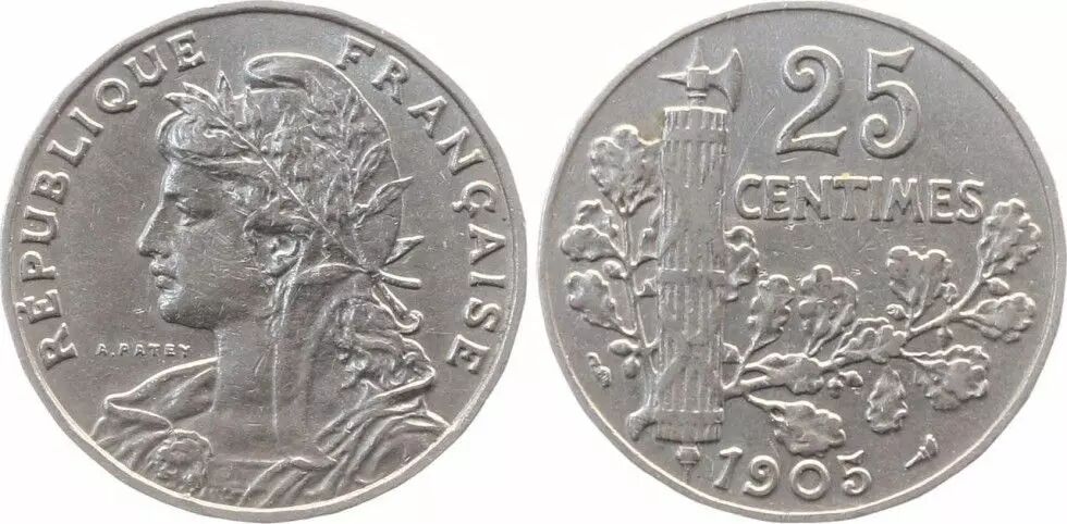 Accueil > Monnaies françaises (470 à 2002) > France 25 Centimes Patey - 1905