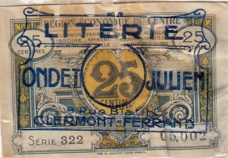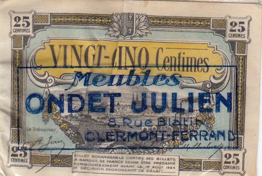 Banknote France 25 Centimes Publicitaire Lietrie Ondet - Clermont Ferrand - Serial 322