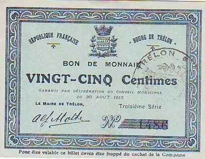 Billet France 25 Centimes Trélon