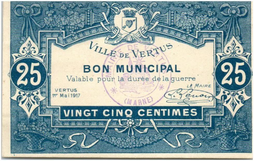 Billet France 25 Centimes Vertus Ville - 1917