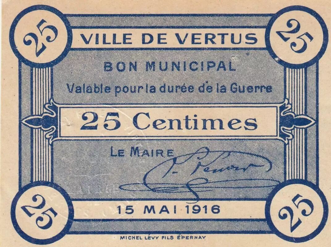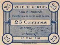 Billet France 25 Centimes - Ville de Vertus - 15-05-1916