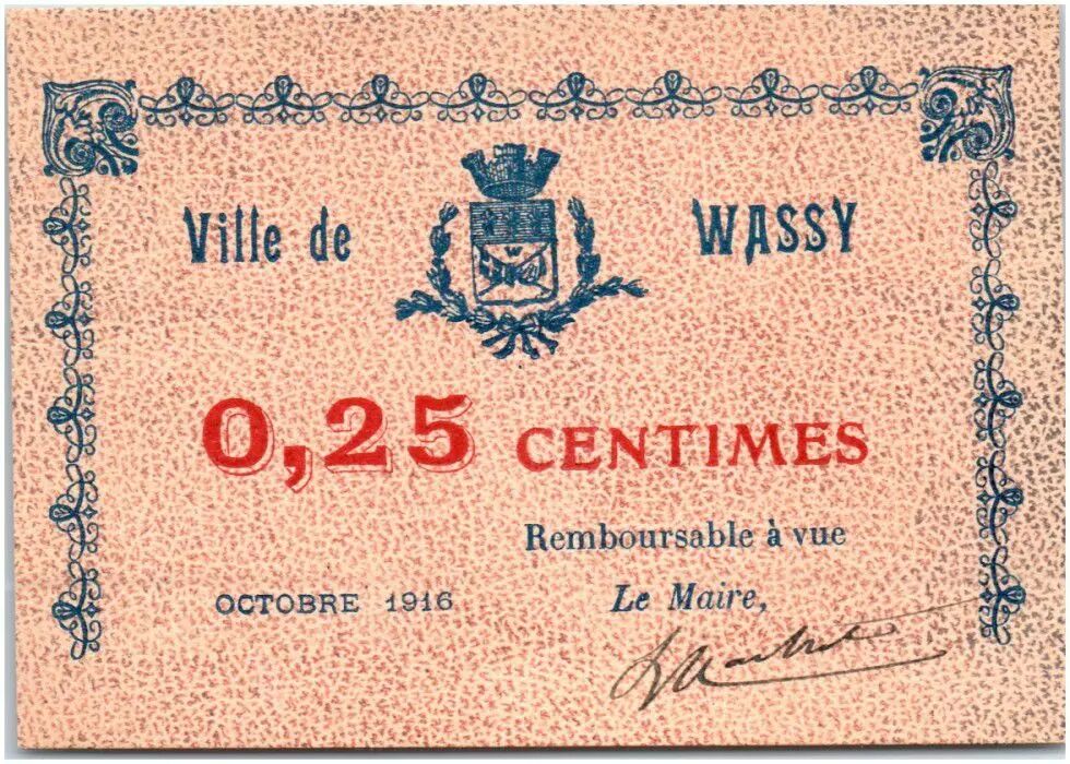 Billet France 25 Centimes Wassy Ville - 1916