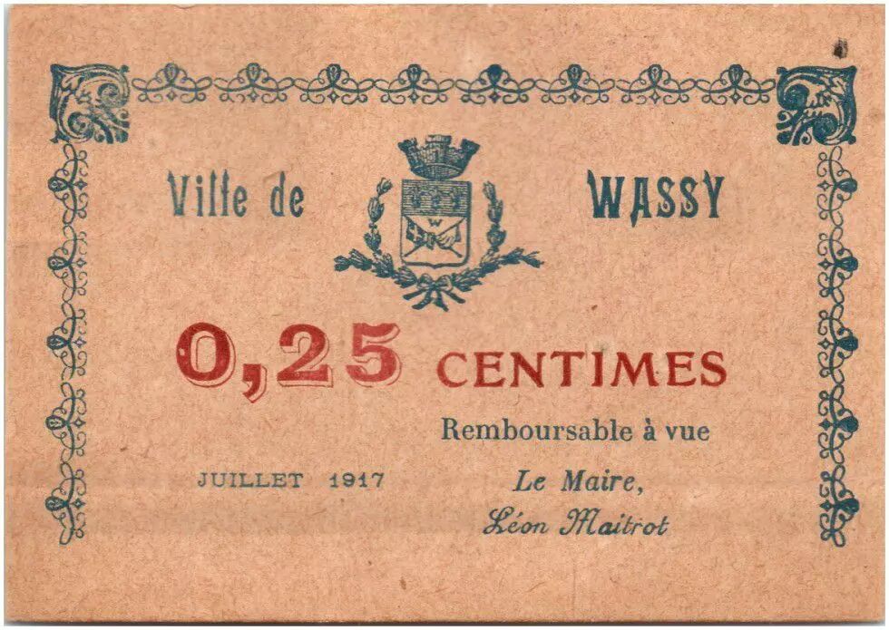 Billet France 25 Centimes Wassy Ville - 1916