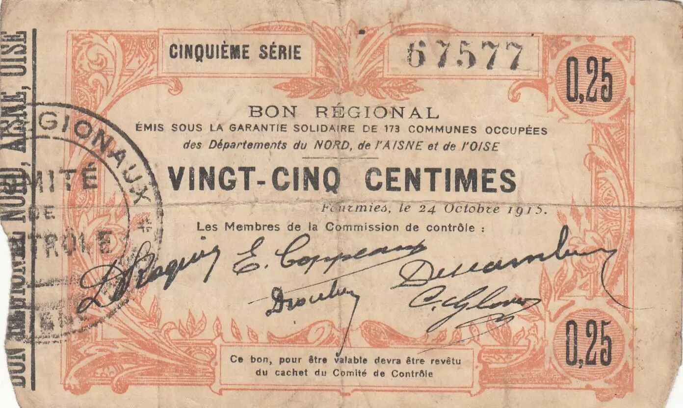 Home > > France 25 Cents - Fourmies - Regional Coupon - 24-10-1915 - Fifth serial