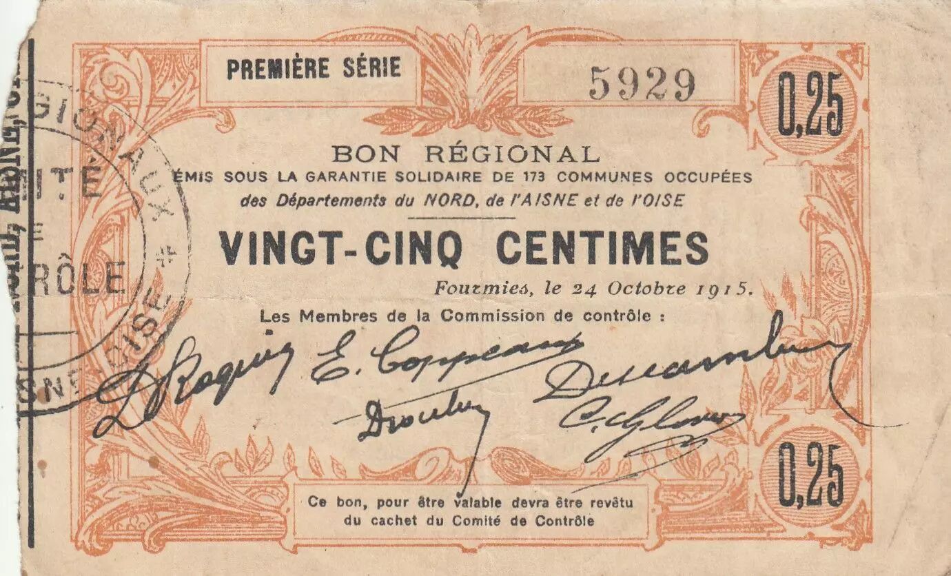 Banknote France 25 Cents - Fourmies - Regional Coupon - 24-10-1915 - First serial