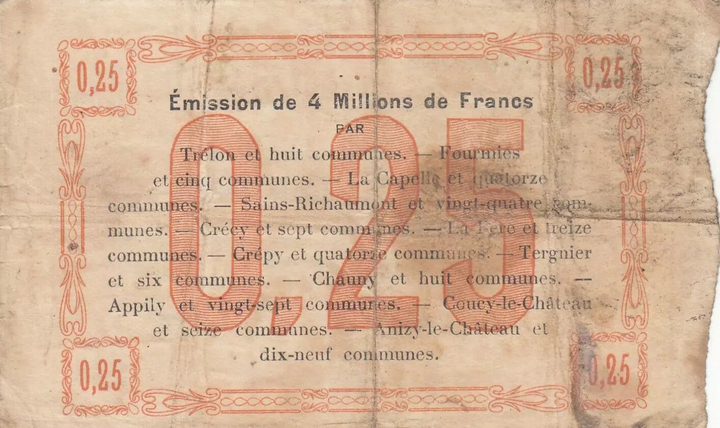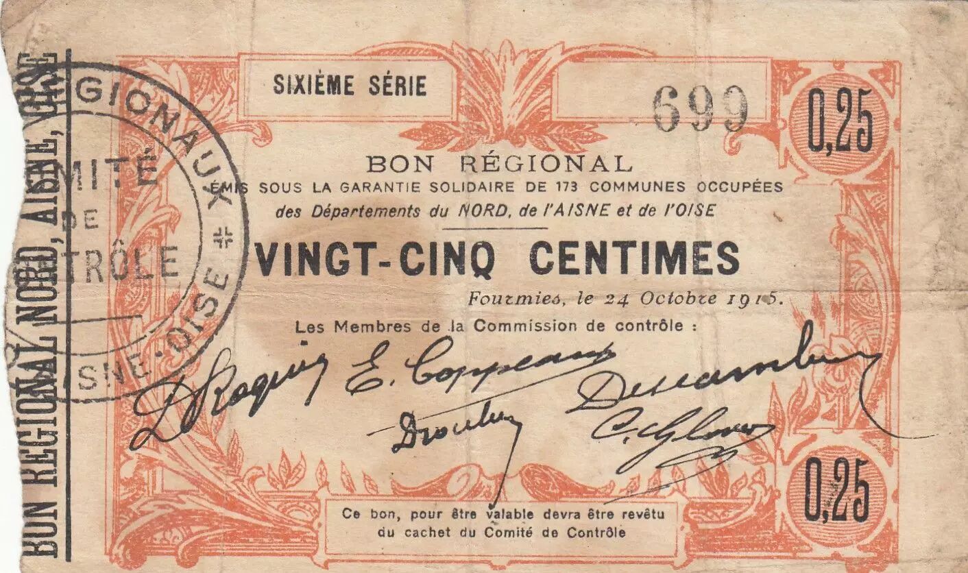 Banknote France 25 Cents - Fourmies - Regional Coupon - 24-10-1915 - Sixth serial