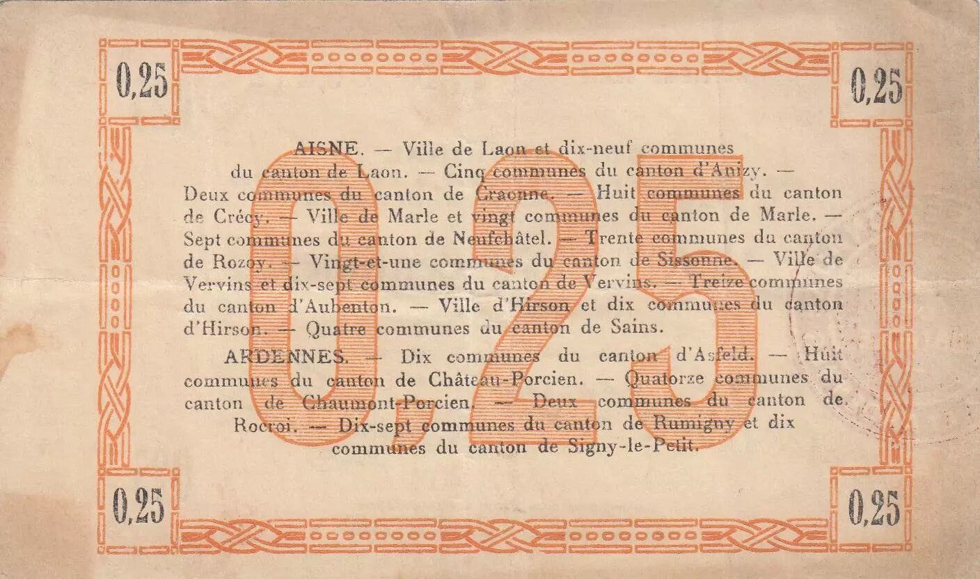 Banknote France 25 Cents - Laon - Regional Coupon - 19-09-1915 - Eighth serial