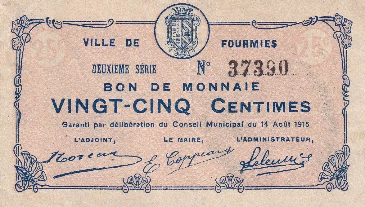 Home > French Banknotes > Necessity Money (1789-1945) > City and Municipal Bonds 1914-1925 > France 25 Cents - Ville de Fourmies - 1915 - 2nd serial - P.59-1080