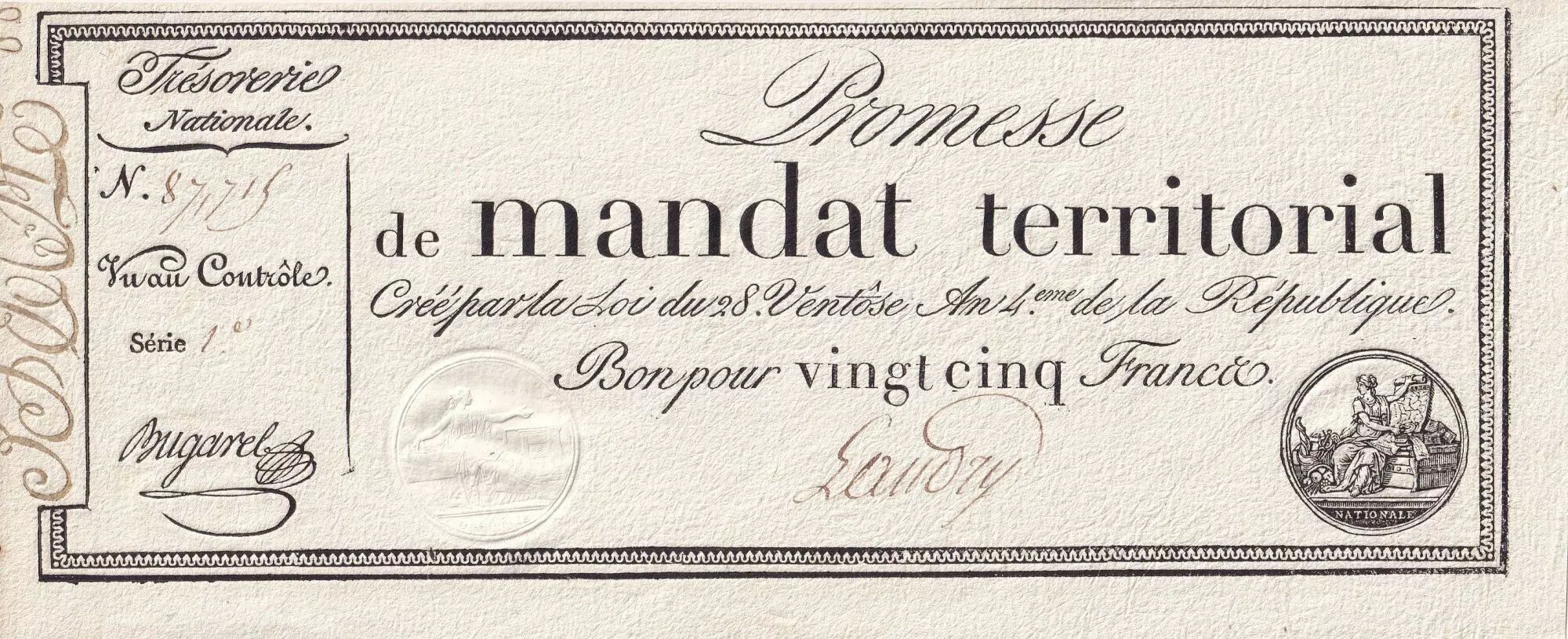 Billet France 25 Francs - Mandat Territorial avec série - 1796 - SPL