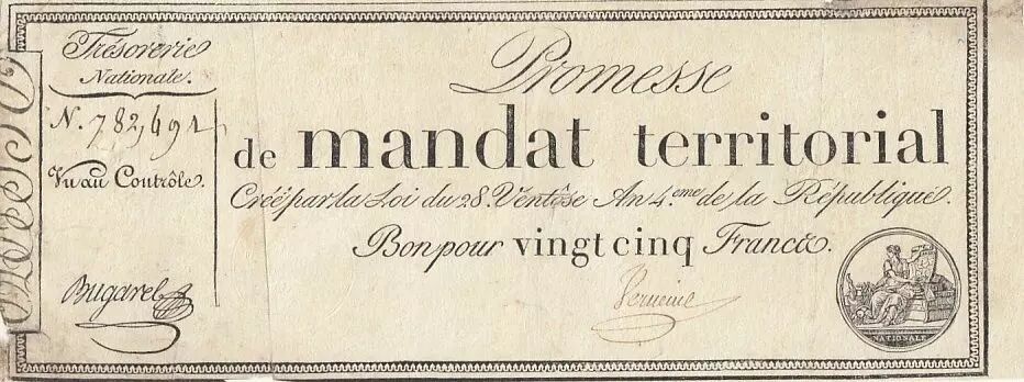 Accueil > Archivage > France 25 francs - Mandat Territorial sans série - 1796 - TB+