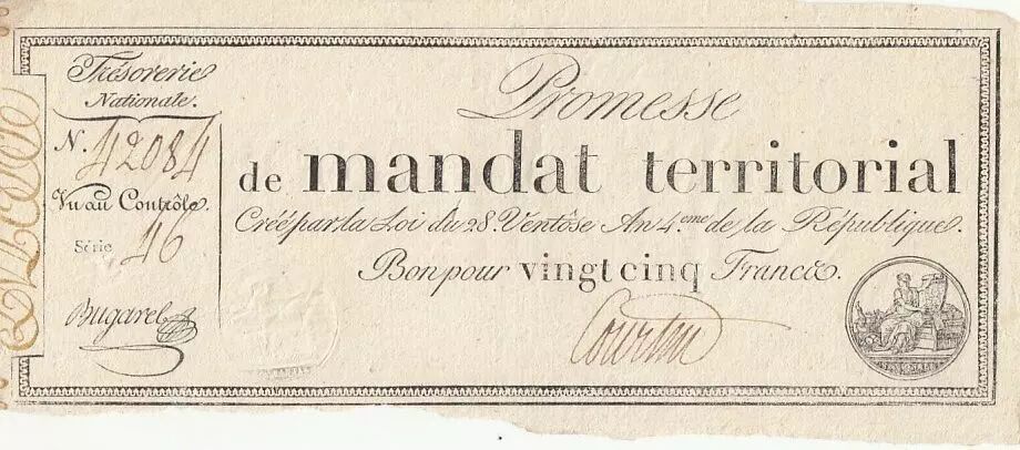 Billet France 25 francs - Mandat Territorial série 46 - 1796 - SUP