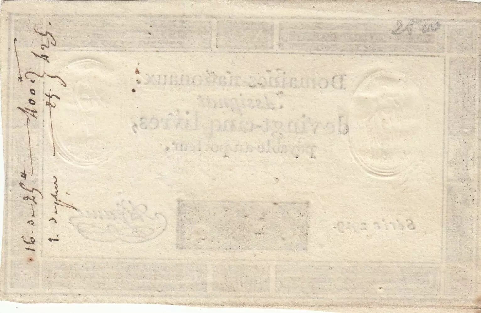 Home > > France 25 Livres - Black print - 06-06-1793 - Sign. Jame - Serial 2919