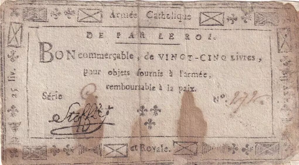 Bon de Maulevrier dit Bon de Stofflet - 1794 salissures, billet rare !