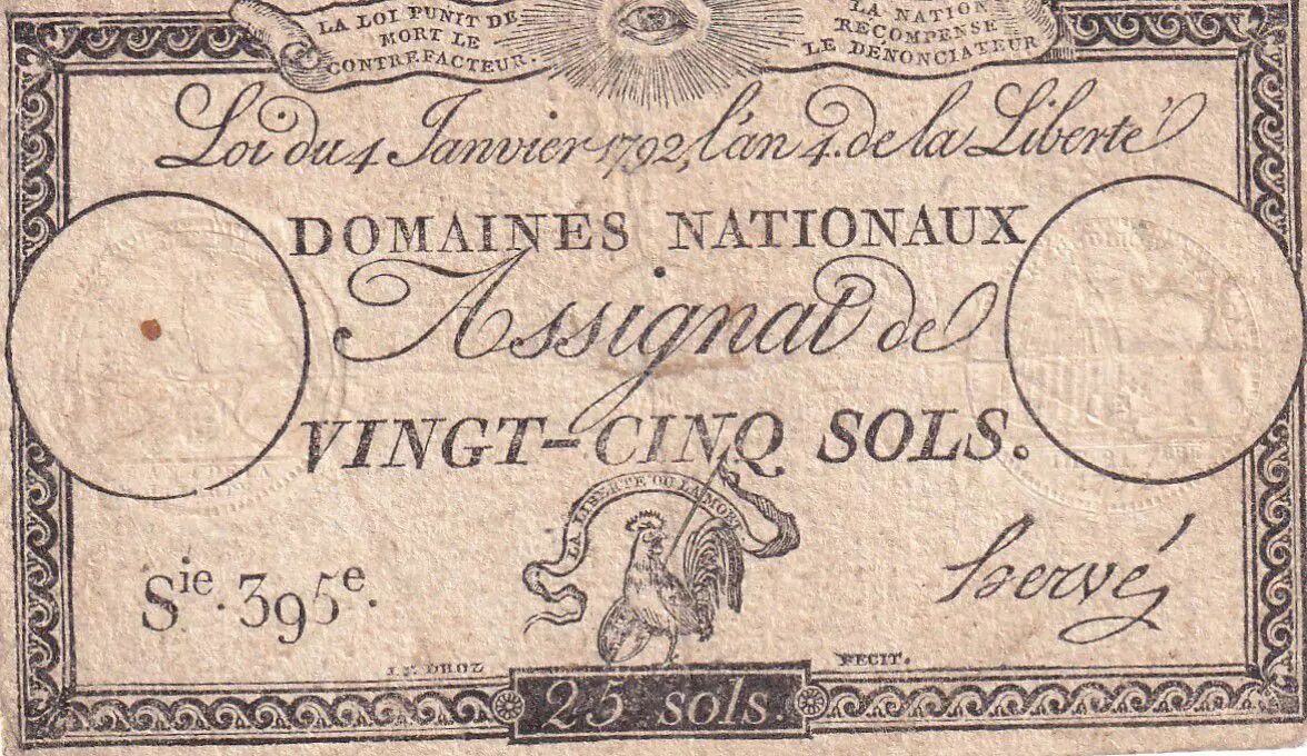 Billet France 25 Sols - Coq - 04-01-1792 - Sign. Hervé - Série 395 - L.150