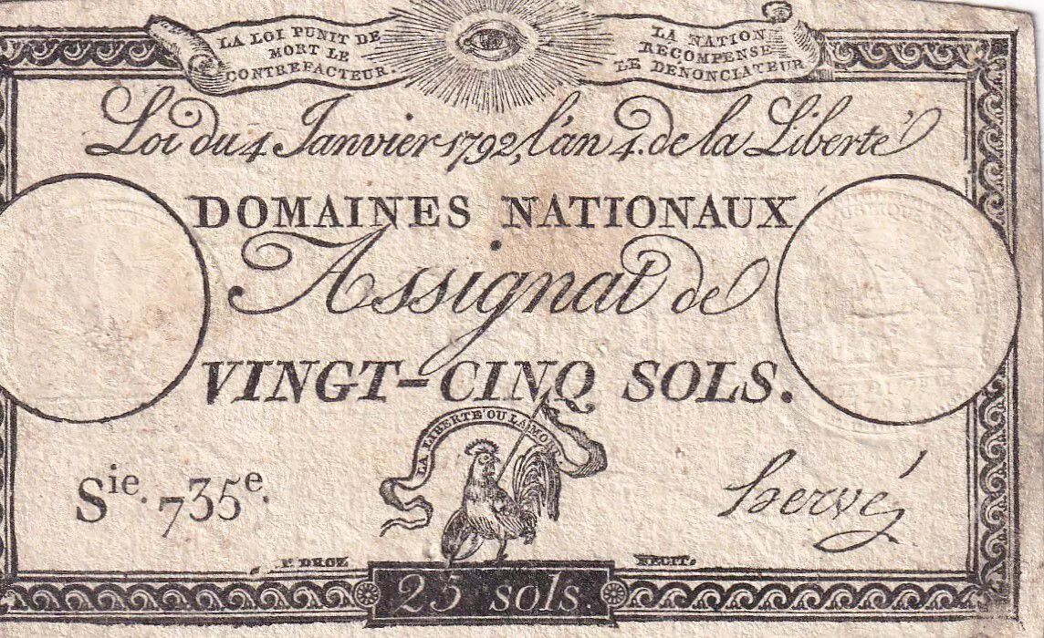 Billet France 25 Sols - Coq - 04-01-1792 - Sign. Hervé - Série 735 - L.150