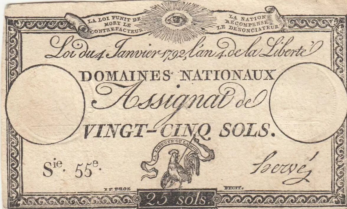 Billet France 25 Sols - Coq - 04-01-1792 - Sign. Hervé - Séries 55