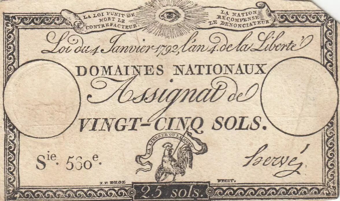 Billet France 25 Sols - Coq - 04-01-1792 - Sign. Hervé - Séries 560