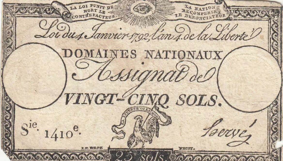 Home > French Banknotes > Assignats > 25 Sols Assignats > France 25 Sols - Rooster - 04-01-1792 - Sign. Hervé - Serial 1410