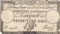 Banknote France 25 Sols - Rooster - 04-01-1792 - Sign. Hervé - Serial 1410