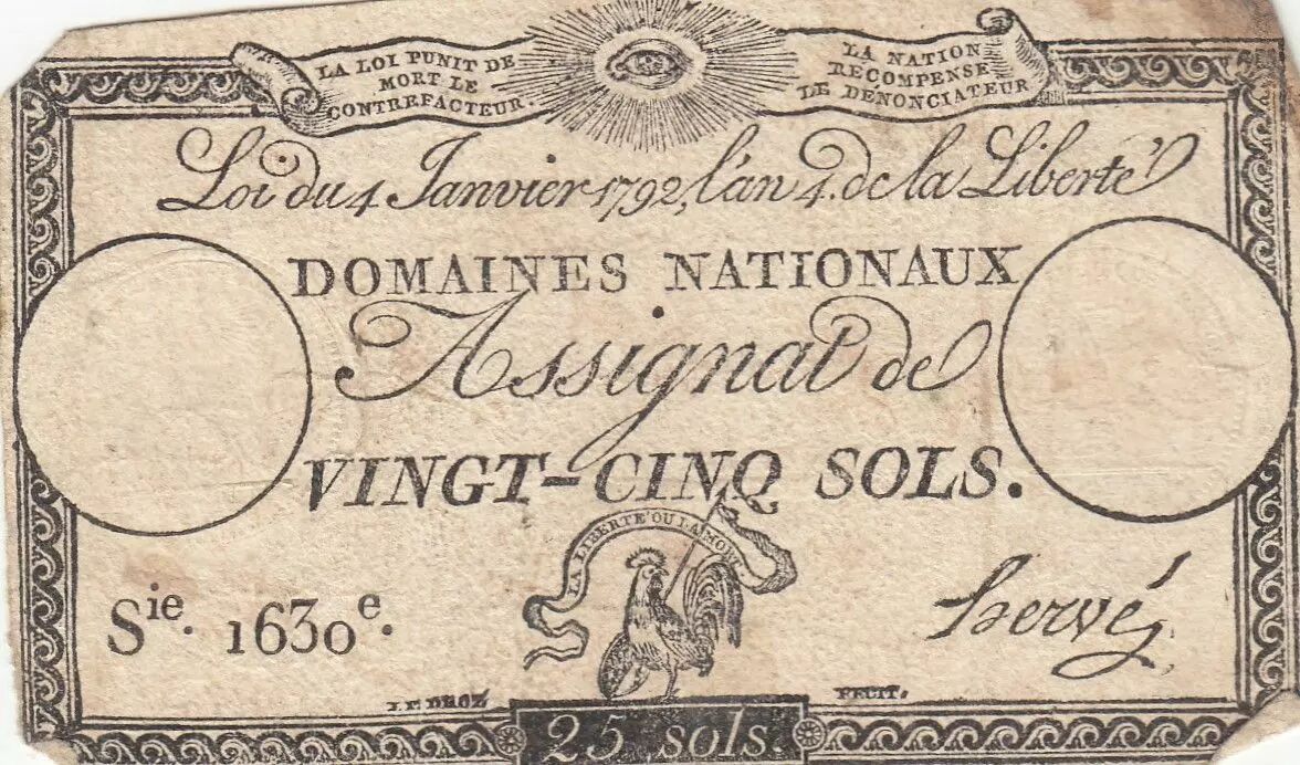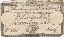 Banknote France 25 Sols - Rooster - 04-01-1792 - Sign. Hervé - Serial 1630