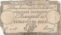 Home > French Banknotes > Assignats > 25 Sols Assignats > France 25 Sols - Rooster - 04-01-1792 - Sign. Hervé - Serial 1705