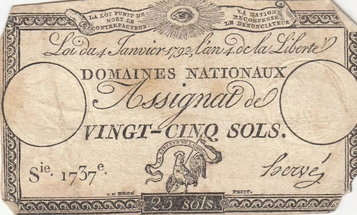 Banknote France 25 Sols - Rooster - 04-01-1792 - Sign. Hervé - Serial 1737