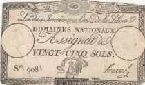 Banknote France 25 Sols - Rooster - 04-01-1792 - Sign. Hervé - Serial 908