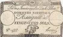 Home > French Banknotes > Assignats > 25 Sols Assignats > France 25 Sols - Rooster - 04-01-1792 - Sign. Hervé - Serial 955