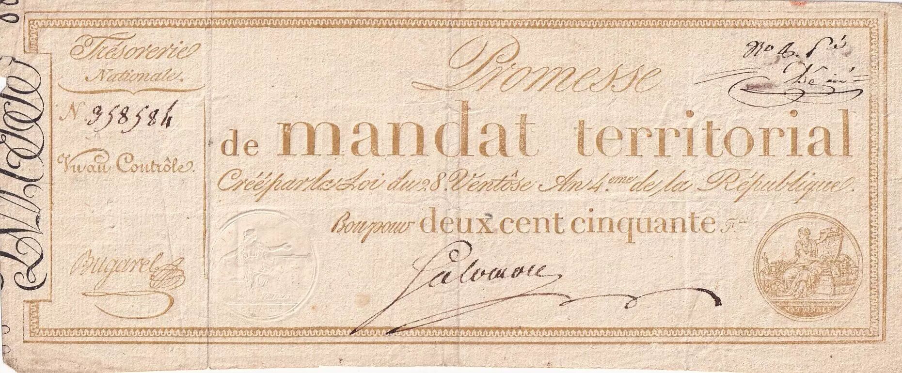 Accueil > Archivage > France 250 Francs - Mandat Territorial sans série - 1796 - TTB