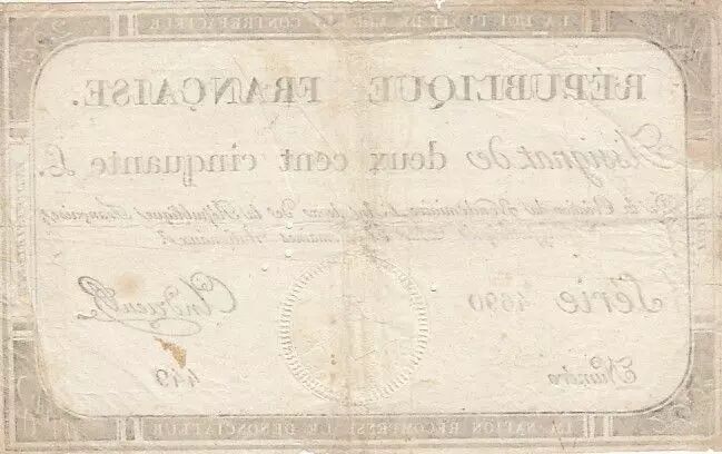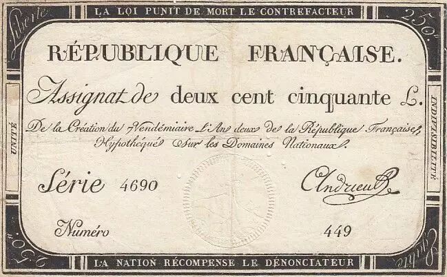 Accueil > Archivage > France 250 Livres - 7 Vendémiaire An II - 1793 - Sign. Andrieu - Série 4690