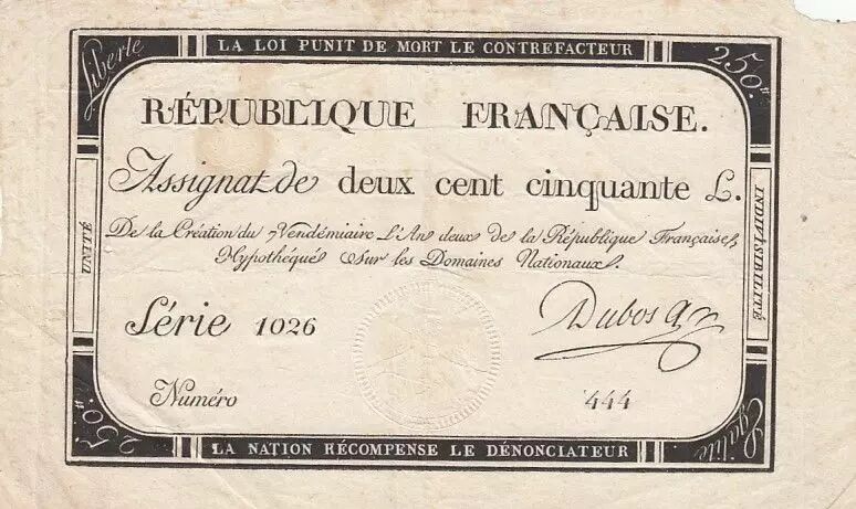 Home > > France 250 Livres - 7 Vendemiaire An II - 28.9.1793 - Sign. Dubos