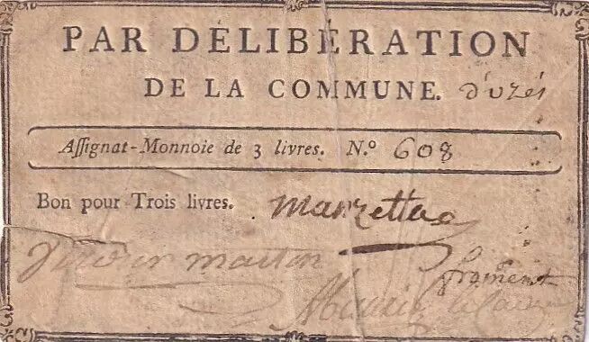Banknote France 3 Livres - Gard - Commune de Uzès - 1791