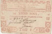 Banknote France 3 sous - Puy de dôme - Municipality of Cornon - 1792