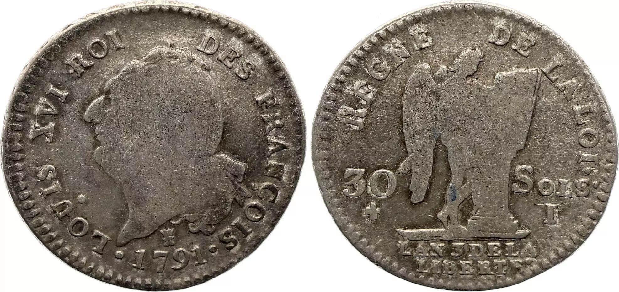 Pièce France 30 Sols Louis XVI - Génie - 1791 I Limoges - Argent