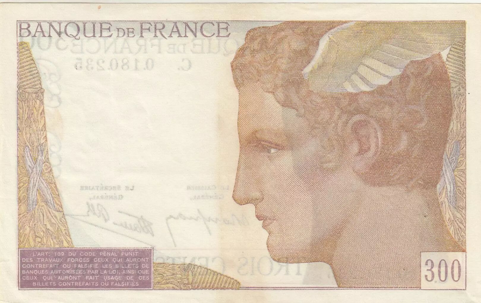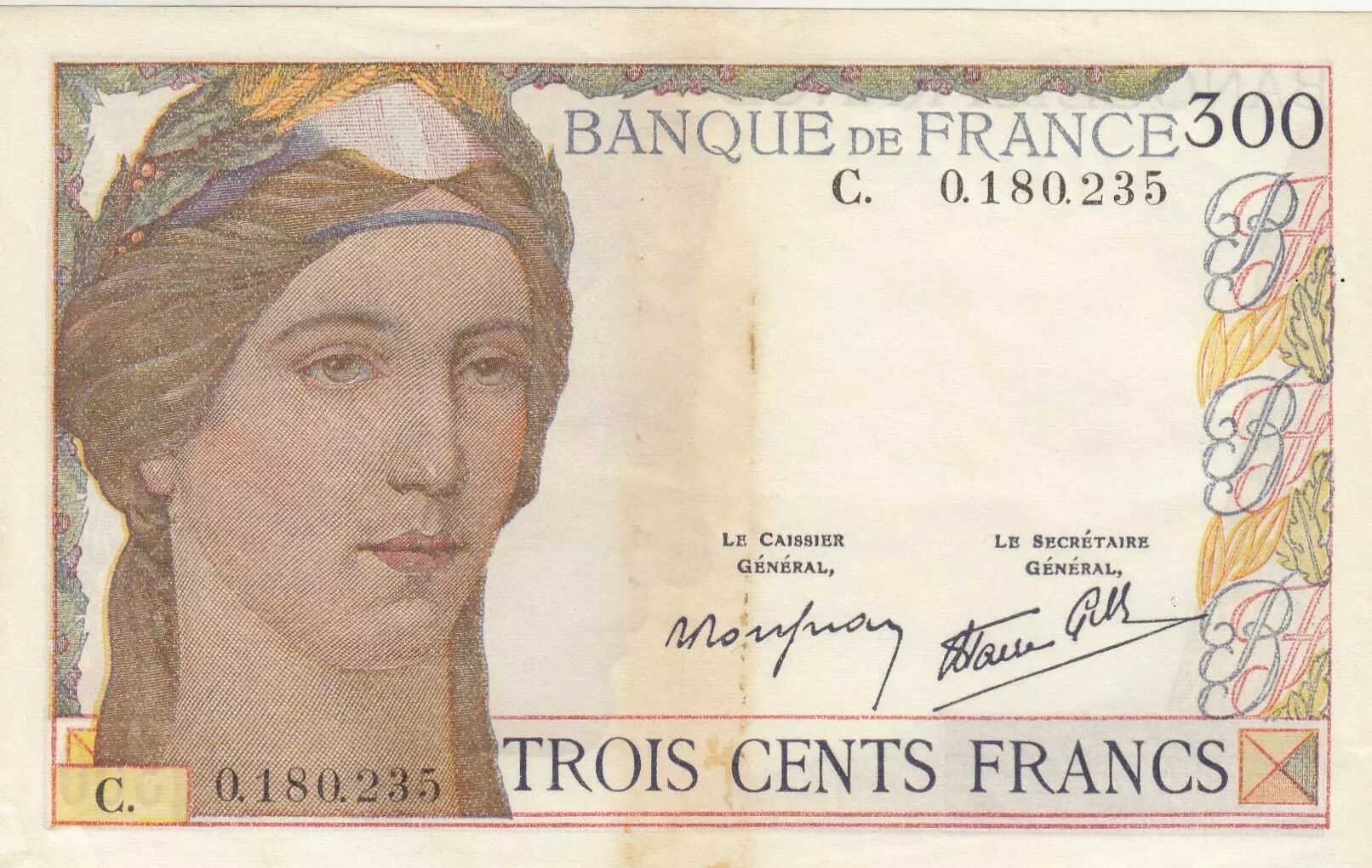 Accueil > Archivage > archivage-Billets Français > France 300 Francs - Cérès - 06-10-1938 - Série C.0180235