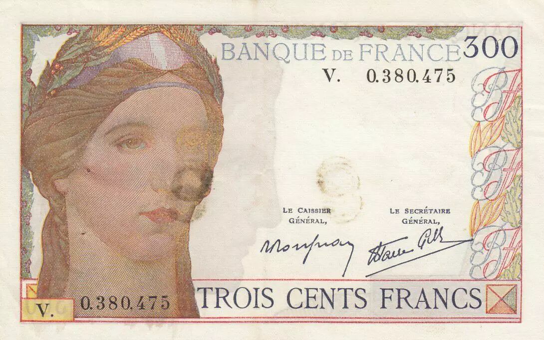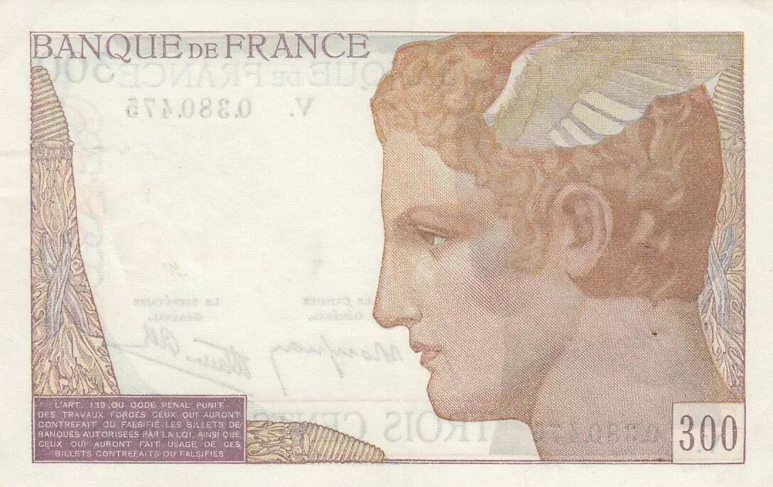 Accueil > Archivage > France 300 Francs Cérès et Mercure - 1939 - V.0.380.475 - TTB