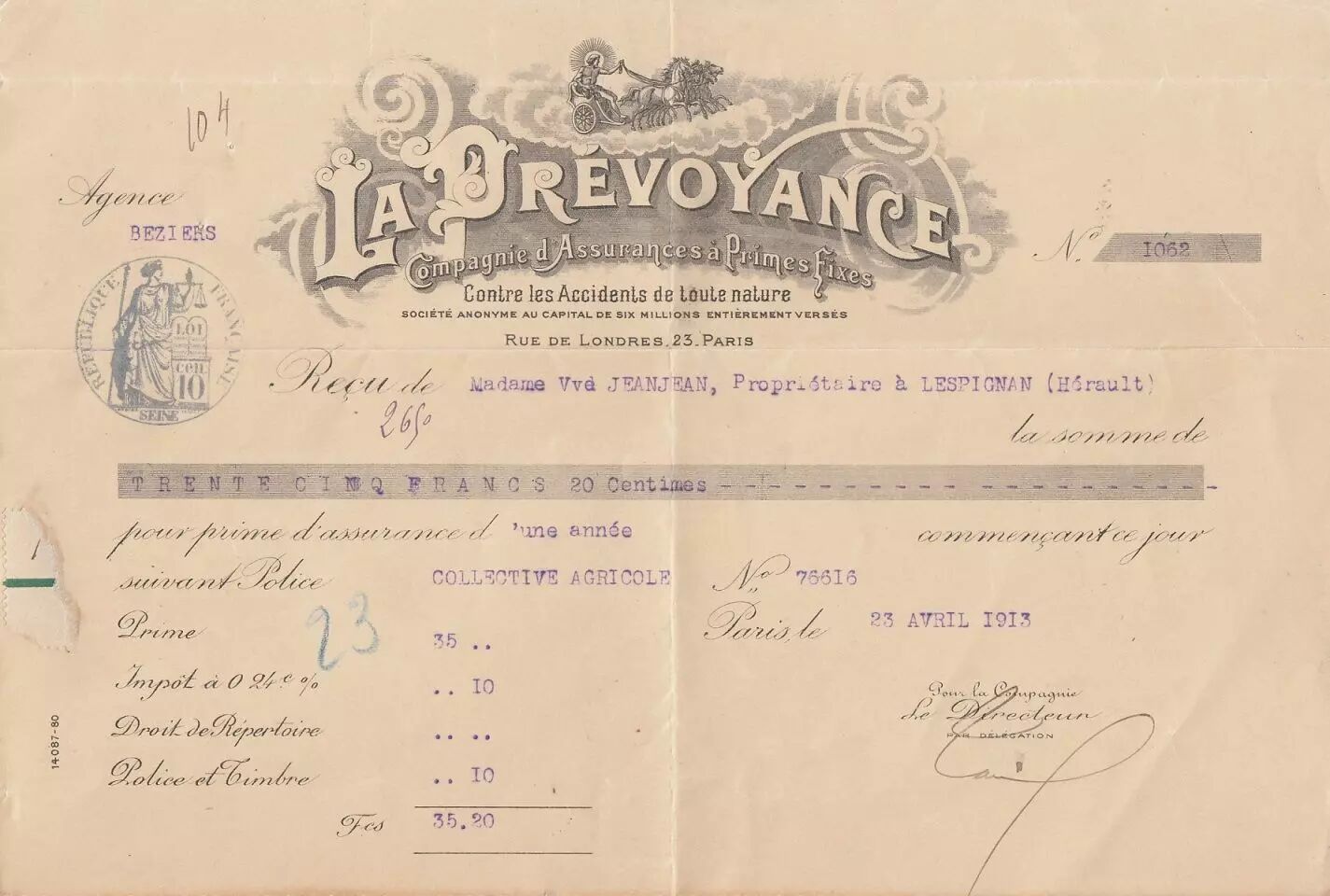 Banknote France 35.20 francs - Bank cheque receipt - La prévoyance - 1913