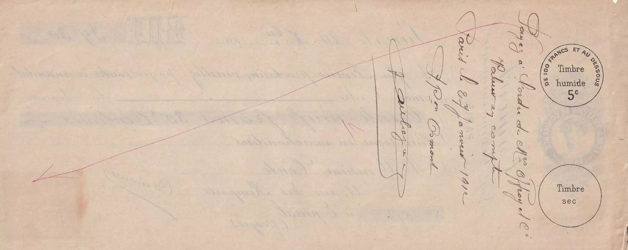 Home > World Banknotes > Checks and Traveler's Checks > France 39.30 francs - Bank cheque receipt - École pratique de commerce - 1912