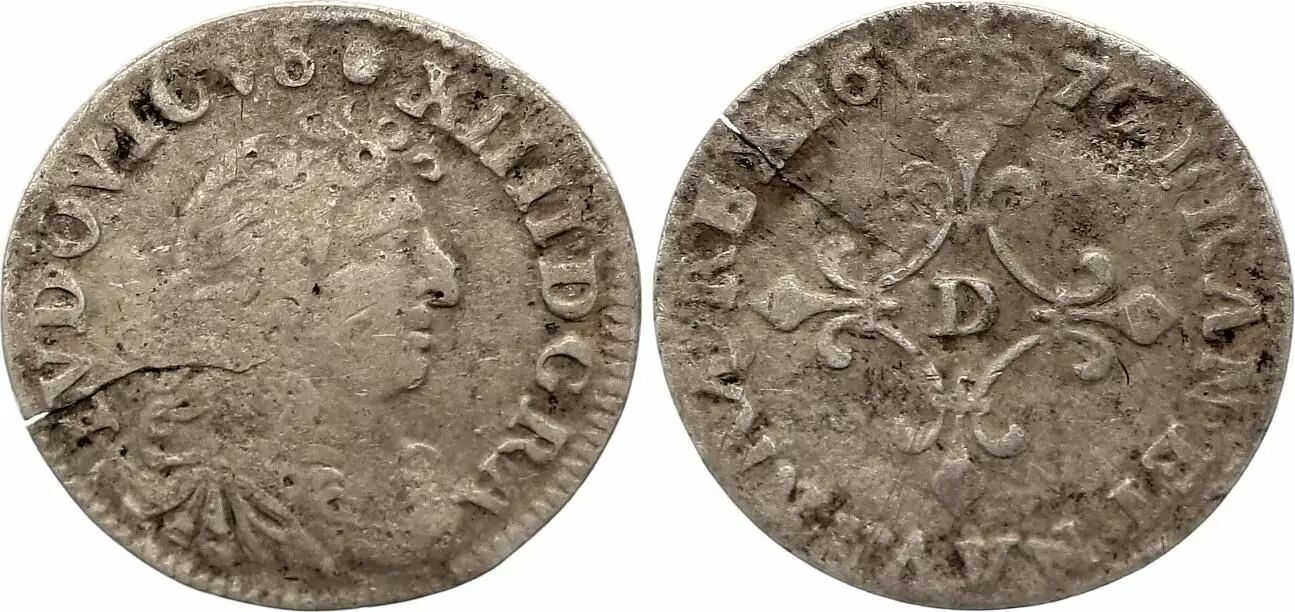 Coin France 4 Sols Louis XIV - 1676 - D Lyon - Silver