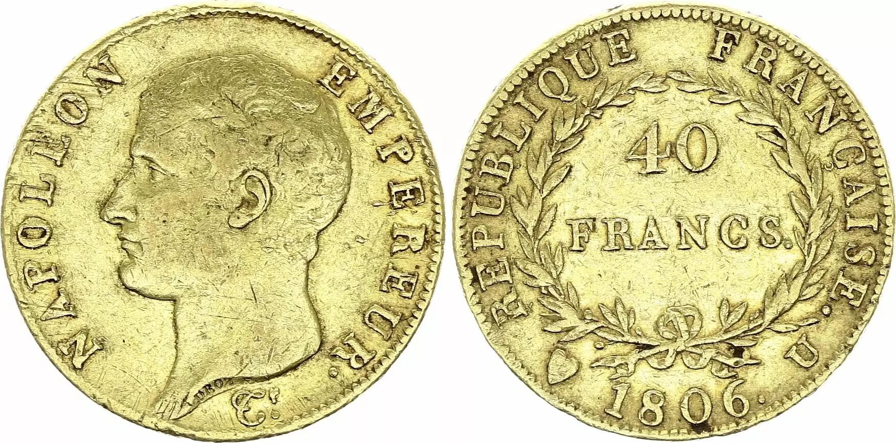 Pièce France 40 Francs - Napoléon I - Tête nue - 1806 U Turin
