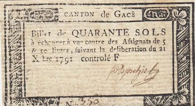 Banknote France 40 sols - Orne - Canton of Gacé - 1791