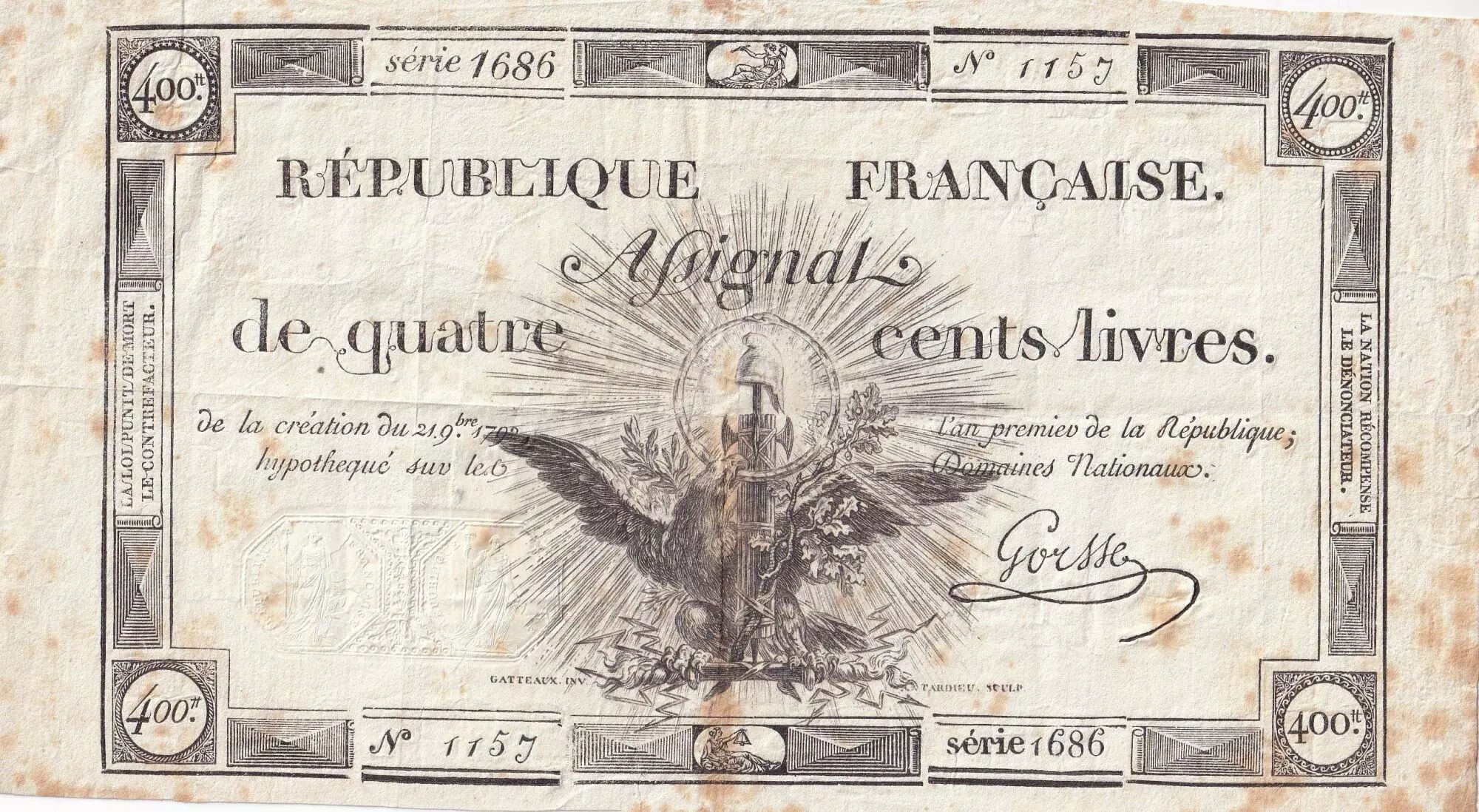 Accueil > Archivage > archivage-Archivage > France 400 Livres - 21-11-1792 - Sign. Gorsse - Série 1686 - L.163