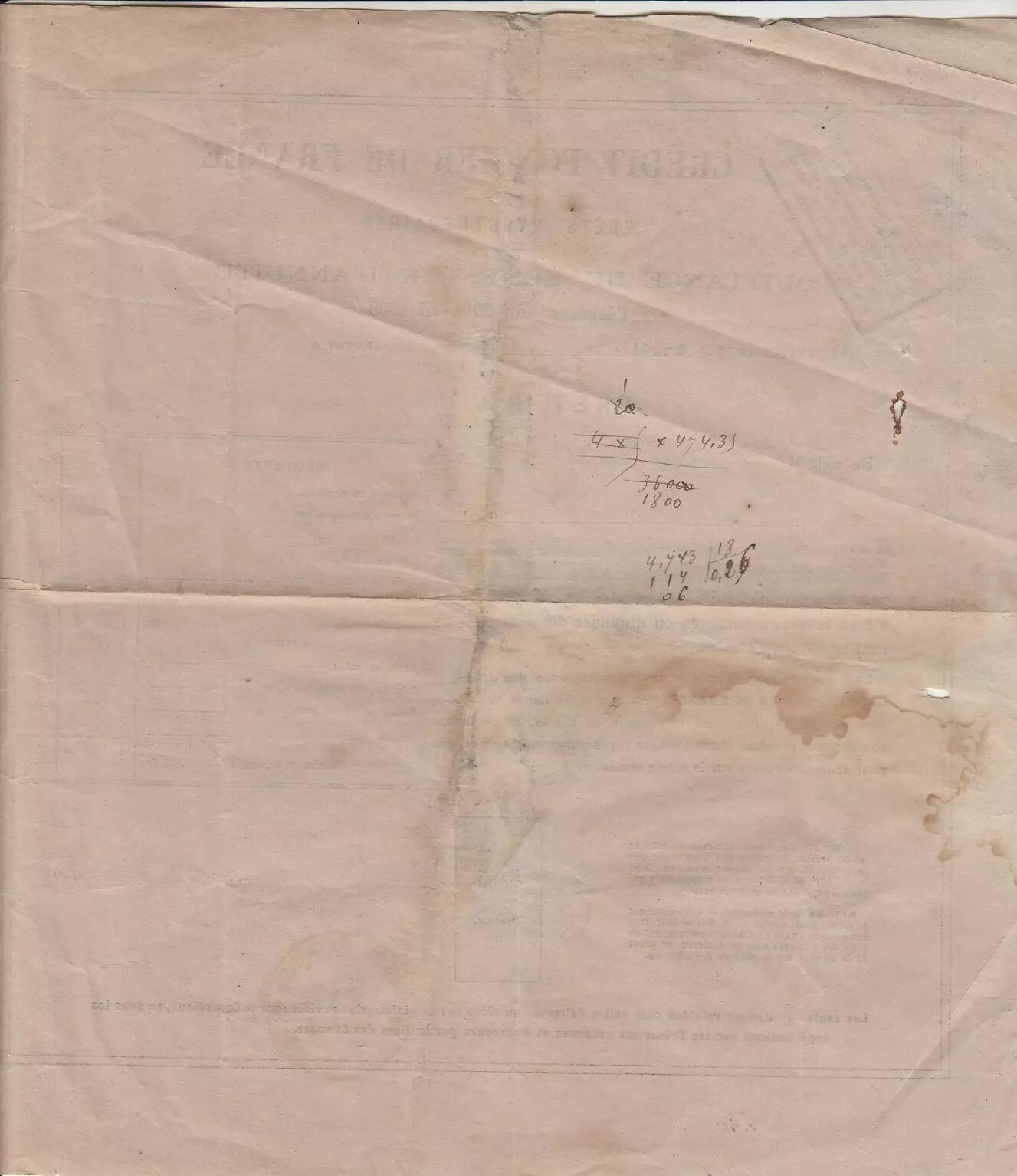 Accueil > Billets du Monde > Chèques et travellers Chèques > France 474 francs - Reçu de chèque de banque - Crédit foncier de france - 1903