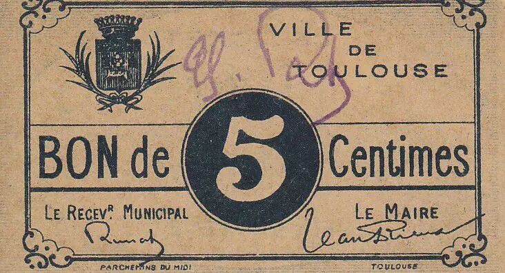 Banknote France 5 cent. Toulouse City