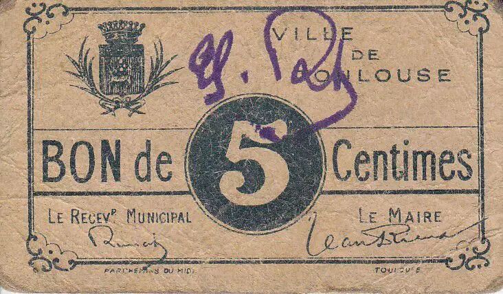 Banknote France 5 cent. Toulouse City