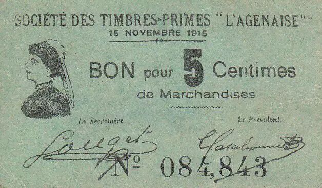 Billet France 5 Centimes Agen Sté Timbres-Primes L'Agennaise